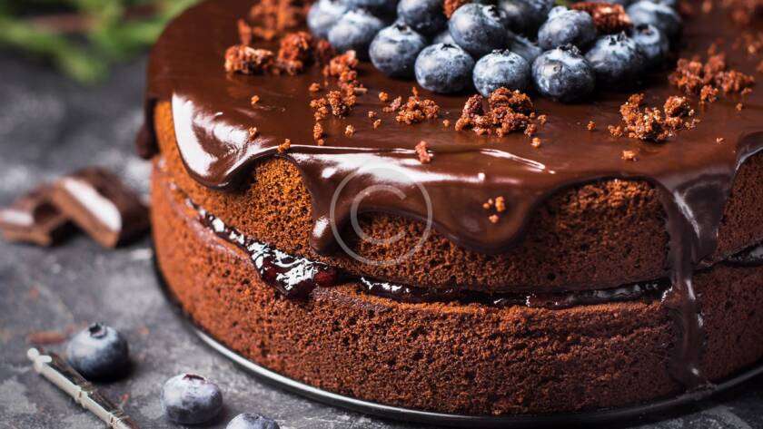 Heavenly delicious chocolate sponge cake with fresh blueberries